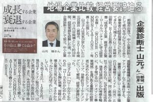 11月14日付の宮崎日日新聞に、書籍『成長する企業 衰退する企業 -ローカルベンチャーに学ぶ経営の本質-』の著者、山元理氏の取材記事が掲載されました。 「地場企業比較 経営要諦迫る」と題された記事では、山元氏のプロフィー […]